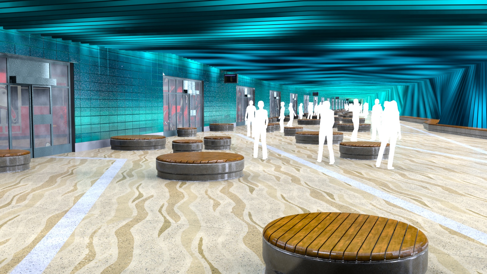 Terminalens undervattenstema löper genom hela anläggningen och knyter ihop vänthall för fjärrbussar, biljetthall för tunnelbanan och vänthall för lokalbussar.